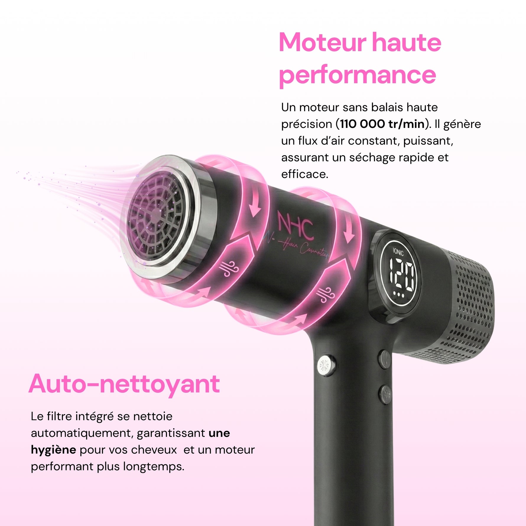 Le filtre intégré se nettoie automatiquement, garantissant une hygiène parfaite pour vos cheveux et un moteur performant plus longtemps.